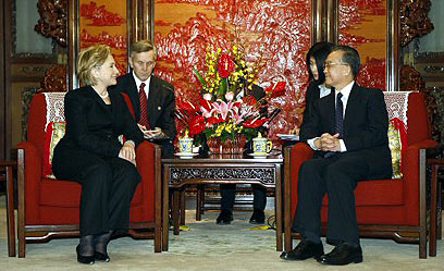 ראש ממשלת סין וון ג'יאבאו עם קלינטון, אתמול (צילום: AFP)