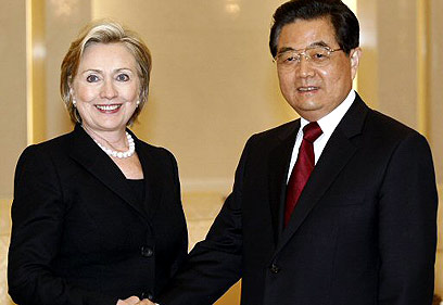 לא באה להרצות ולהטיף מוסר. קלינטון עם נשיא סין (צילום: רויטרס)