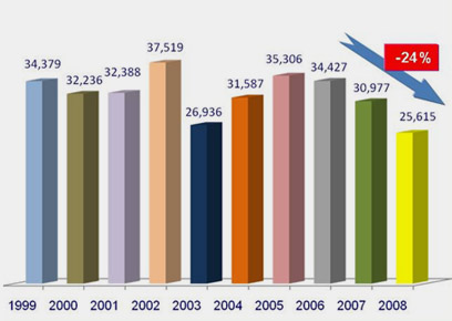 ב-2008 חלה ירידה כללית של 4 אחוזים בעבירות המין לעומת השנה שקדמה לה, כאשר בתוך הגדרה זו ירדו מספר מעשי האונס בעטיים נפתחו תיקים ב-4 אחוזים ועבירות המעשים המגונים ב-6 אחוזים. בנושא אלימות גופנית נרשמה ירידה של 4.8 אחוזים, אולם מספר מקרי הרצח עלה, מ-118 בשנת 2007 ל-122 בשנה העוקבת. מתוכם, 11 מקרי רצח בין בני זוג, בהשוואה ל-13 ב-2007.