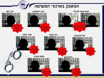 כחלק מהמצגת שהפיקה המשטרה, תחת הכותרת "המאבק בארגוני הפשיעה" - הוצגו צלליות שלידן שמות ראשי ארגוני הפשע שנמצאים מאחורי סורג ובריח, בהם זאב רוזנשטיין, יצחק ומאיר אברג'יל, אסי אבוטבול, שלום דומרני ועמיר מולנר. לצדן נכתבו הפרטים, כמו "ראש הארגון במאסר", "5 ראשי הארגון בהליכי הסגרה", "6 עצורים עד תום ההליכים".
