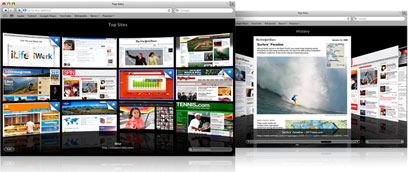 בנוסף, אפל שילבה בדפדפן ממשק גרפי חדש. לשוניות הגלישה עברו לחלק העליון של המסך (בדומה לדפדפן כרום של גוגל), גירסת Windows זוכה לממשק המותאם למערכת ההפעלה, אתרים מועדפים נקבעים בצורה אוטומטית על פי הרגלי גלישה ומוצגים בצורה גרפית כמסך הפתיחה של הדפדפן, וניתן לדפדף בהסטורית הגלישה או באתרים מסומנים בשיטת Cover Flow, המדמה "זרימת" תמונות הניתנות לדפדוף מהיר.