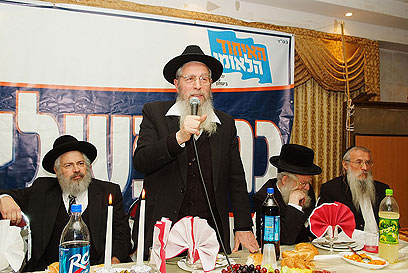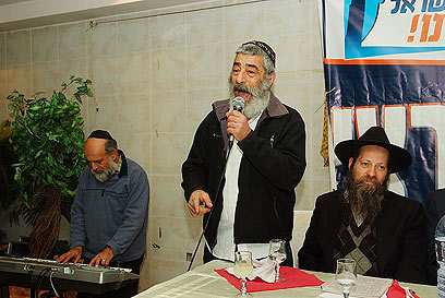 הרב אריאל נואם בכינוס (צילומים: ישראל ברדוגו)