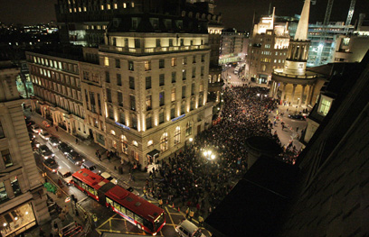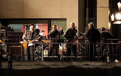אחרי שהופיעה בטקסי הגראמי והבריטס, "U2" המשיכה בסוף השבוע בקמפיין לכיבוש העולם בעקבות אלבומה החדש, "No Line On The Horizon". בערב שישי על בניין רשת ה-BBC שבלונדון, בונו, דה אדג', אדם קלייטון ולארי מולן, ערכו הופעה קצרה ו"סודית" מול אלפי אנשים שסתמו את הרחוב הקר. המופע היה מתוכנן היטב וכלי התקשורת הבריטים מדווחים כי ארבעת השירים שניגנה הלהקה על הגג נשמעו מצוין עבור הצופים שעמדו על הכביש והמדרכות.