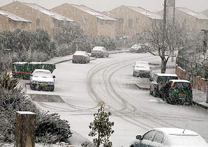 שלג ביישוב פסגות (צילום: עזריאל פינסקי)