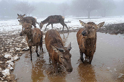 צבאים ביער איילים שבהר אודם, צפון רמת הגולן (צילום: אביהו שפירא)
