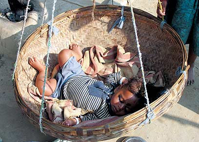 התינוק ישן בעריסה במיתחם אוהלים עני בכפר סמוך למיקדשים בקג'ראו והאנשים חיים מהיד לפה. הילדים שיחקו, קפצו ו"דיגמנו" בשבילי, כאילו היו "אמית אבצ'ן" (כוכב סרטי בוליווד). פתאום ראיתי אותו חמוד קטן שברירי, ישן בסל הקש חצי מוצל. התמונה מיד תפסה את עיני בגלל התמימות והרוגע שהקטנטן משרה - גם בעוני, בחום, ברעב ובמחסור, החיים ממשיכים וזו בעיניי אחת התמציות של הודו.