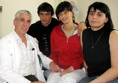מימין: אמא של מרים, מרים, אחיה ופרופ' איתן מור, מנהל מחלקת השתלות בבילינסון (צילום: בית החולים בילינסון)