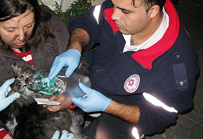 ת"א: צוות מד"א הנשים חתול שחולץ משריפה