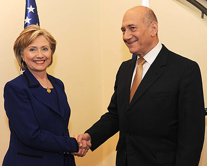 אולמרט וקלינטון, הערב. "מחויבות עמוקה" (צילום: אבי אוחיון, לע"מ)