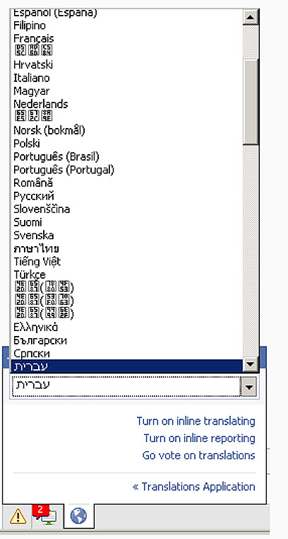 מעבר לכך - ההליך זהה. פיתחו את רשימת ה-Translations, וביחרו ב"עברית" (או בכל שפה אחרת שתתאים לכם, למשל טורקית).