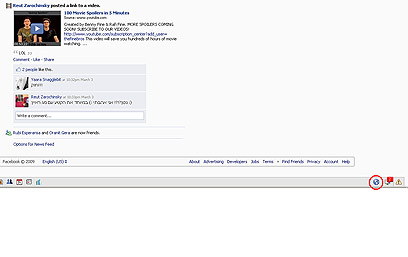אם התקנתם בעבר את אפליקצית התרגומים (המומלצת) של פייסבוק, תוכלו למצוא בתחתית המסך, בחלק השמאלי, אייקון קטן של כדור הארץ (מסומן בעיגול אדום).