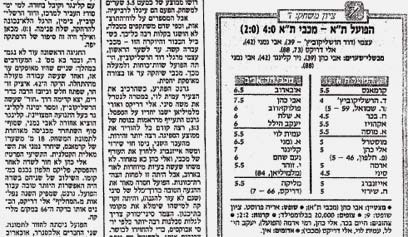 השפן הצהוב, שהקבוצה שיחקה עם חסות ששייכת לו - דיסקוטק פלדיום, היה זקוק לחמש דקות בלבד כדי להתעורר. לאחר שקיבל צהוב בשל עבירה על מוסה, יצאה מכבי להתקפה. נמני פרץ במרכז המגרש, בעט חזק מרחוק - קראמנס הדף לרגליים של מספר 7, שנתן קטנה לרשת הגבוהה, ורץ לגדרות של שער 11 - אש בעיניים ו-0:3 ענק.