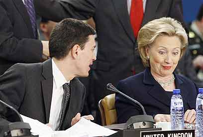 קלינטון לצד שר החוץ הבריטי בכינוס נאט"ו בבריסל (צילום: AP)