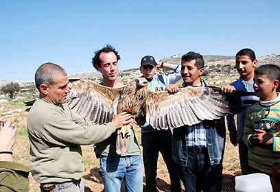 עטף עאוודה, פלסטיני תושב כפר דיר סמת באזור חברון היה בדרכו לעבודתו במוסך בשבוע שעבר כשהבחין בקבוצת ילדים המתגודדת בשולי הכביש סביב דורס גדול. "כשראיתי אותם משחקים איתו פחדתי שהם יהרגו אותו, והבנתי שאם הוא לא מצליח לעוף הוא חולה או פצוע", סיפר עאוודה ל-ynet. "זו פעם ראשונה שאני רואה ציפור כזאת גדולה ובהתחלה חשבתי שהיא התחשמלה".