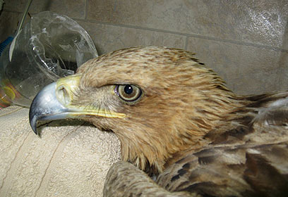 העיט לאחר שהגיע לבית החולים (שמוליק לנדאו, רשות הטבע והגנים)