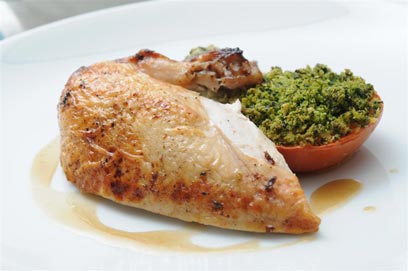 - הופכים את העוף על גבו וצולים כ-15 דקות נוספות.