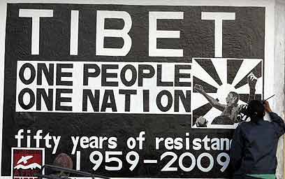 גרפיטי לרגל 50 שנה להתקוממות הטיבטית, בהודו (צילום: רויטרס)