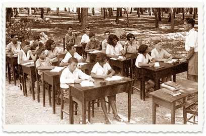 11. שיעור בחורשת שפיה עם המורה עשאל, 1939.