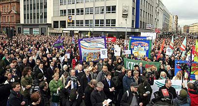 מחאה דוממת בבלפסט, היום (צילום: AFP)