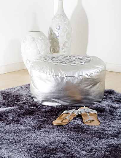להשלמת המראה ההוליוודי, הוא פרש בסלון שטיחי פרווה סינטטית, ששערותיהם עשויות מסיבים גבוהים, שנארגו בטורקיה. את שאר הסלון מעטרים שטיחי שאגי בגווני אפור-ירוק, בטקסטורה מיוחדת של גלים בגבהים שונים, עם נצנצים ועם פסי זברה. בסוויטה המלכותית בחר ששון בשטיח לבן עבה, עשוי סיבי פוליאסטר דמוי משי, למראה אלגנטי ומפנק במיוחד. ובאמבטיה? גם שם, למה לא, על הרצפה האפורה נפרש שטיח שאגי כסוף, איכותי וצפוף במיוחד, מחומר סינטטי, שאפשר לדרוך עליו גם עם רגליים רטובות.