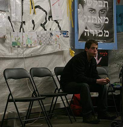 האח הבכור יואל באוהל המחאה (צילום: גיל יוחנן)
