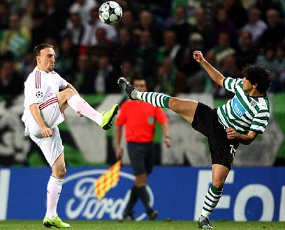 אבל מספורטינג במשחק מול באיירן. הבושה לא עברה בשקט (צילום: AP)
