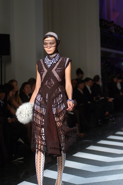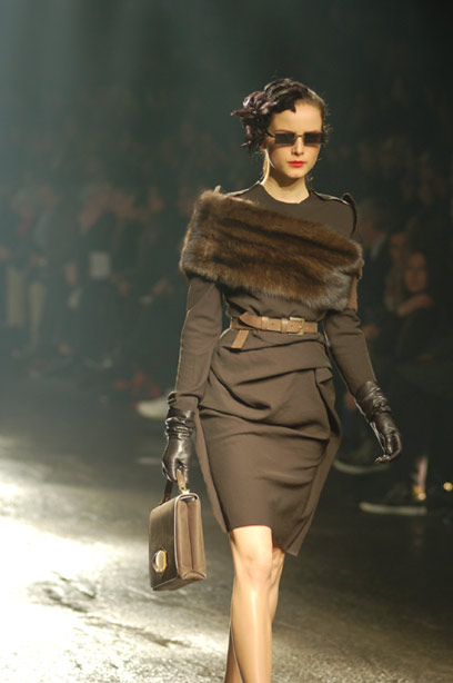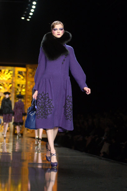 ג'ון גליאנו חשב בוודאי על קרלה ברוני כשעיצב את החלק הראשון של התצוגה לבית דיור. המעיל היפה עם צווארון הפרווה המאוד-קורקטי (אם כי לא ממש פוליטיקלי-קורקט, בתמונה) בהחלט מתאים לאשת הנשיא הצרפתי. בחלקה השני של התצוגה נראתה מלתחה בהשפעה אוריינטלית מעוטרת בתכשיטים נפלאים.