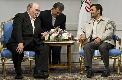 אחמדי-נג'אד מארח את ד'אסקוטו בטהרן, בשבוע שעבר (צילום: רויטרס)
