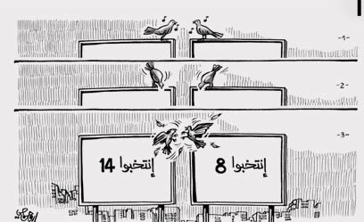 אפילו הציפורים על מודעות תעמולת הבחירות רבות בינן ("א-נהאר" הלבנוני)