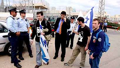 ההפגנה בכניסה לכלא השרון (צילום: עידו ארז)