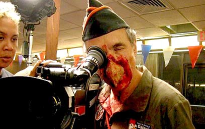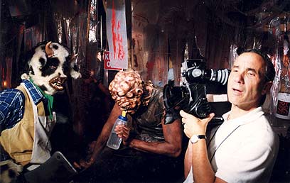 קאופמן על הסט של "Poultrygeist". לא שולל עוד הפקה ישראלית