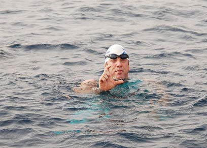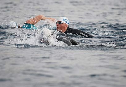 התחלתי לשחות. במהלך ההקפה הראשונה עוד זיהיתי לידי את גדי, אבל גם אחרי שאיבדתי אותו החלטתי להמשיך בקצב שקבעתי. בסוף ההקפה הרביעית, כשהשלמתי שלושה ק"מ ועברתי את חצי המרחק, ידעתי שאני מסוגל לסיים את זה.