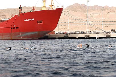 עמוק בתוך שגרת האימונים, בתחילת נובמבר, צחי הכריח אותי לשחות קילומטר שלם ברצף. הזזתי את הגוף כמו שלמדתי, שמרתי על תנועות ארוכות ומתונות בקצב שקבעתי מראש, וזה נגמר נורא מהר. באותו שבוע גיליתי שאני מסוגל לגמוא בריכה ב־14 תנועות; כעבור עוד שבוע כבר שחיתי שני קילומטרים. מפה לשם בישר לי גדי על משחה המים הפתוחים שייערך במסגרת טריאתלון אילת בעוד שבועיים. "זה מרחק של 5.25 ק"מ", הוא אמר. "הזדמנות מצוינת לבדוק איך אנחנו מתקדמים לקראת המרתון האמיתי".