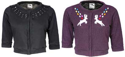 אפשרויות נוספות, שאינן ממש ז’קטים, מציע המותג PIOO PIOO של המעצבות הישראליות מור וקארין. הן יצרו שני קרדיגנים מקסימים עם שרוולי 3/4: אחד בשחור עם אבנים, השני בסגול עם במבים ואבנים צבעוניות – יותר ילדותי מזה, במובן החינני והנעים של המושג, אי אפשר למצוא.