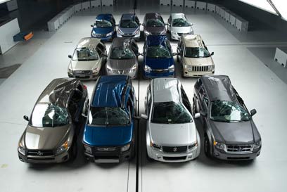 מכוניות המבחן לאחר שרוסקו. ארבע הצטיינו, שמונה לא הבריקו