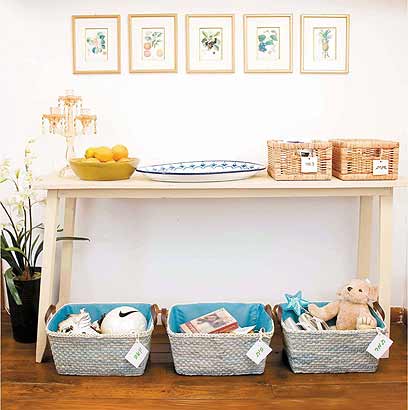 בביתילי עדכנו את הקולקציה הנוכחית בסלים קלועים צבעוניים במראה אקזוטי בסגנון באלי, חלקם שזורים בדי משי בגוונים מרהיבים ומעוטרים בידיות מגולפות מעץ (החל מ-60 שקל). הסלים האלה לא רק מתאימים לסידור, אפשר להשתמש בהם גם כדקורציה בעיצוב הפנים של הבית, והם מתאימים לטרנד הצבעוני שמאיים לשטוף את הבית.