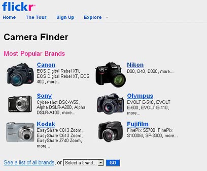 אתר איחסון התמונות הפופולרי של יאהו מארח צילומים של מיליוני גולשים ברחבי העולם, ושומר גם מידע על סוג המצלמה שבה הם משתמשים. בדף הבא אפשר לקבל סטטיסטיקות מעניינות על המצלמות הנפוצות ביותר - סטילס או סלולריות. בהקלקה על הדגם אפשר גם לעיין בתמונות שצולמו בעזרת המצלמה. הסטטיסטיקות שמופיעות באתר רלוונטיות ל-30 הימים האחרונים, ומספקות מעין ברומטר למצבו של שוק המצלמות.