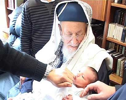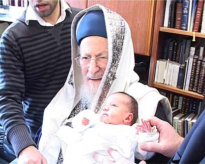 "ויקרא שמו בישראל – מרדכי": הרב הראשי לשעבר מרדכי אליהו אירח היום (ג') בביתו טקס ברית מילה של אחד מתלמידיו ושימש בו כסנדק, זאת לראשונה מאז שוחרר מבית החולים לפני כשלושה חודשים. התינוק שנימול נקרא מרדכי על שמו ולזכותו של הרב, ממנהיגי הציונות הדתית.