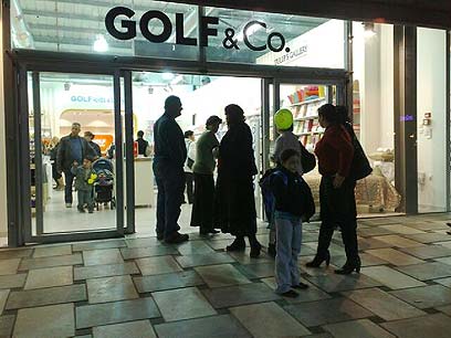 מבקרים בכניסה לאחת החנויות בערב הפתיחה (צילום: אילנה קוריאל)