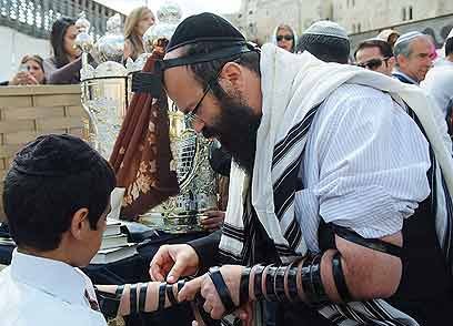 בר המצווה בכותל (צילום: ישראל ברדוגו)