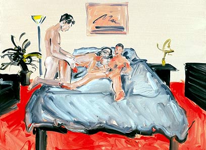 "אני לא עסוק במיניות ולא מתעניין בה, אלא במצב מיני או מצב יצרי. פורנוגרפיה אכן מעניינת אותי; כשאני מצייר ציור זה מרחיק את הדימוי הפורנוגרפי מהמקום של השיפוט. כשאני מצייר אישה השרועה פשוקת איברים היא בעצם עוברת ריכוך. אני לא מתעסק בהומו-אירוטיות וגם לא בפמיניזם, אלא במצב אנושי".