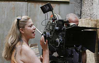 רות' על הסט. מסוקי צה"ל חגו מעל (צילום: יוני המנחם)
