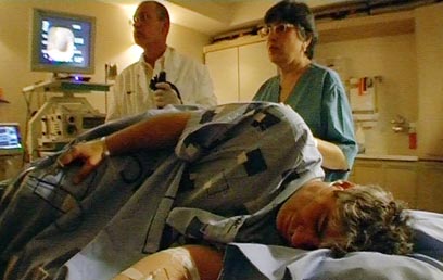 הוא עושה דם-סמוי ואחר כך קולונוסקופיה, ובשלב הזה שממנו חששתי בשידור - השלב בו מעלה החלחולת של מרוז היה הופך למרכז הענין - אני יכולה לדווח בשמחה שהשניים התגברו על כל הקלישאות האפשריות בענין זה, ופשוט עשו מלאכה תיעודית ואזרחית מצוינת, ממש מצוינת.
