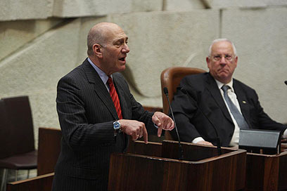 בפעם האחרונה על הדוכן כראש ממשלה, אולמרט (צילום: גיל יוחנן)