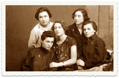 10. 1 - שרה ציזלינג, 3 - רחל (באה מברזיל), 5 - נחמה זיסלמן.
