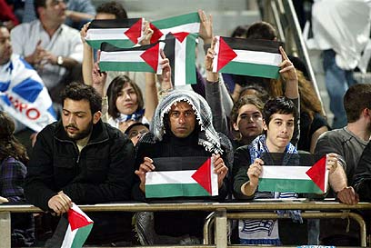 דגלי פלשתין הגיעו עד ליציעים בכרתים (צילום: ניר 'שוקו' כהן)