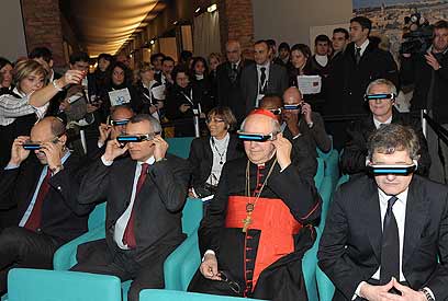 קרדינל ווליני בביקורו ב"מעלית הזמן" - במהלך היריד ברומא (צילום: אהרון ברנשטיין)