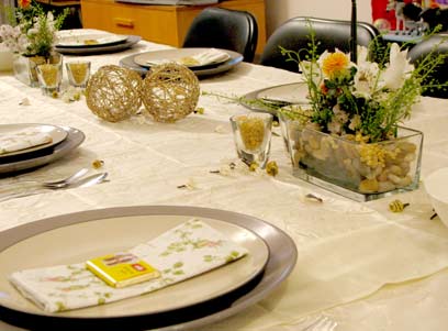 איילת צור, חברה נוספת בפורום, מסבה לשולחן ומוסיפה כמה טיפים לסידורי שולחן שהיא אוהבת לעשות בפסח –