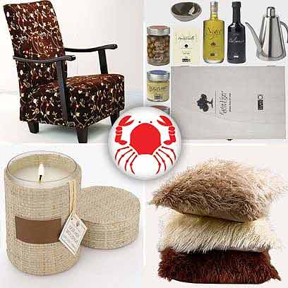 מימין למעלה: מארז שמן זית להשיג בליביו, רוטשילד 21 ת"א- 419 שקל; ספה סוזנה של רשת ביתילי - 2,100 שקל; כריות פרווה המשביר לצרכן 49.90 שקל; נרות של קרבטרי & אוולין 200.90 שקל