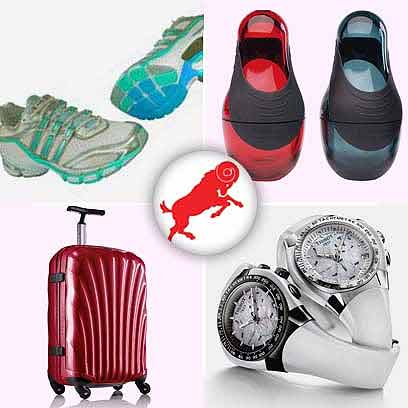 מימין למעלה: שייקר טעמים וניחוחות של השף ג'יימי אוליבר להשיג ברשת "דה קוק סטור" - 199 שקל; נעלי ריצה של אדידס מדגם סופרנובה - 599 שקל; שעון טיסו יוניסקס להשיג ברשת חנויות אימפרס - 3,842 שקל; מזוודה אדומה של סמסונייט - 2,250 שקל